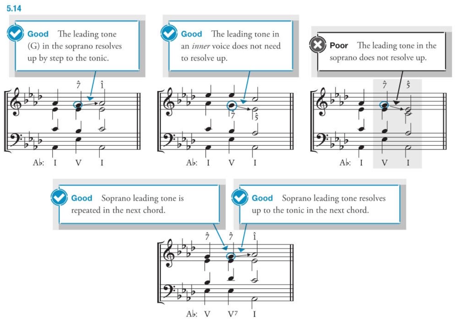 - leading tone in inner voice does not have to resolve up by step