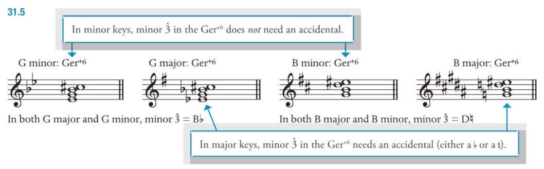 - $\text{Ger}^{+6}$ -> dominant 7th