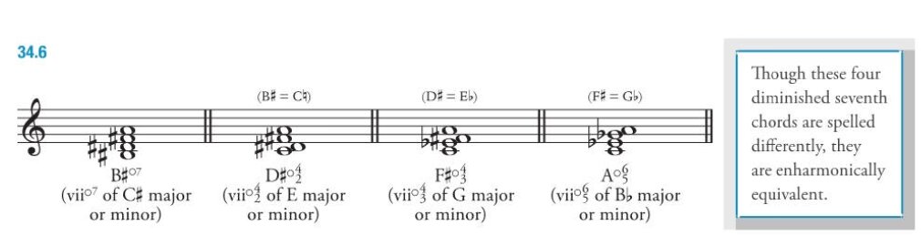- ${\text{vii}^{\circ}}_3^4$ has notes F♭ABD